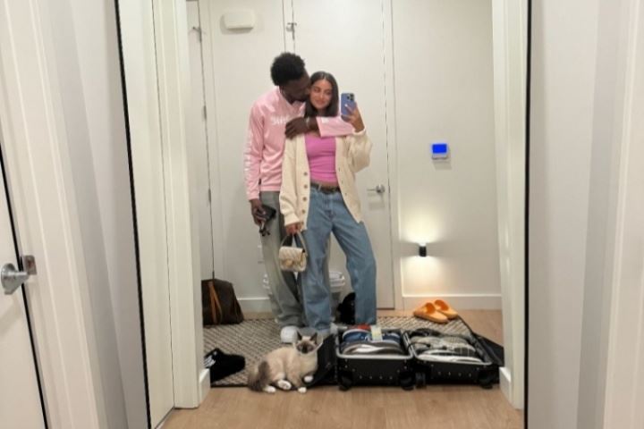 体育资讯08月11日讯 湖人后卫布朗尼-詹姆斯5个小时前更新Instagram快拍动态,晒出和女友Parker Whitfield的亲密照,并写道:“周年纪念日晚餐。”