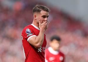 据Squawka的数据统计,上半场,利物浦中场麦卡利斯特总计只有13次触球,没有球员比他更少。