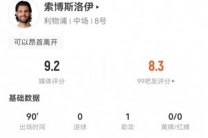 体育资讯10月26日讯 利物浦在本轮英超2-3不敌布伦特福德,索博斯洛伊本场数据如下: